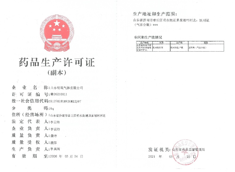 2022年12月取得國家藥品監(jiān)督管理局頒的藥品注冊證書,醫(yī)用氧項(xiàng)目正式投入生產(chǎn)