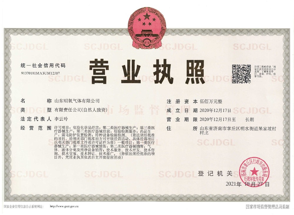 ??? 山東明氧氣體有限公司的前身為始建于1993年的章丘市明水氧氣廠,2020年12月企業(yè)由民營獨(dú)資轉(zhuǎn)型升級為山東明氧氣體有限公司,企業(yè)進(jìn)入新的發(fā)展階段。公司位于山東省濟(jì)南市章丘區(qū)明水街道杲家坡村村北,占地面積4000平方米,注冊資金500萬元,固定資產(chǎn)投資3000萬元,主要經(jīng)營項(xiàng)目為醫(yī)用氧氣、工業(yè)氧氣、氮?dú)狻⒏呒兊獨(dú)狻鍤狻⒏呒儦鍤狻⒏呒兒狻⒍趸肌⒒旌蠚怏w等各種工業(yè)氣體、高純氣體、混合氣體的充裝銷售、各類氣瓶的銷售、安全閥校驗(yàn)、鋼質(zhì)無縫氣瓶的檢驗(yàn)等。